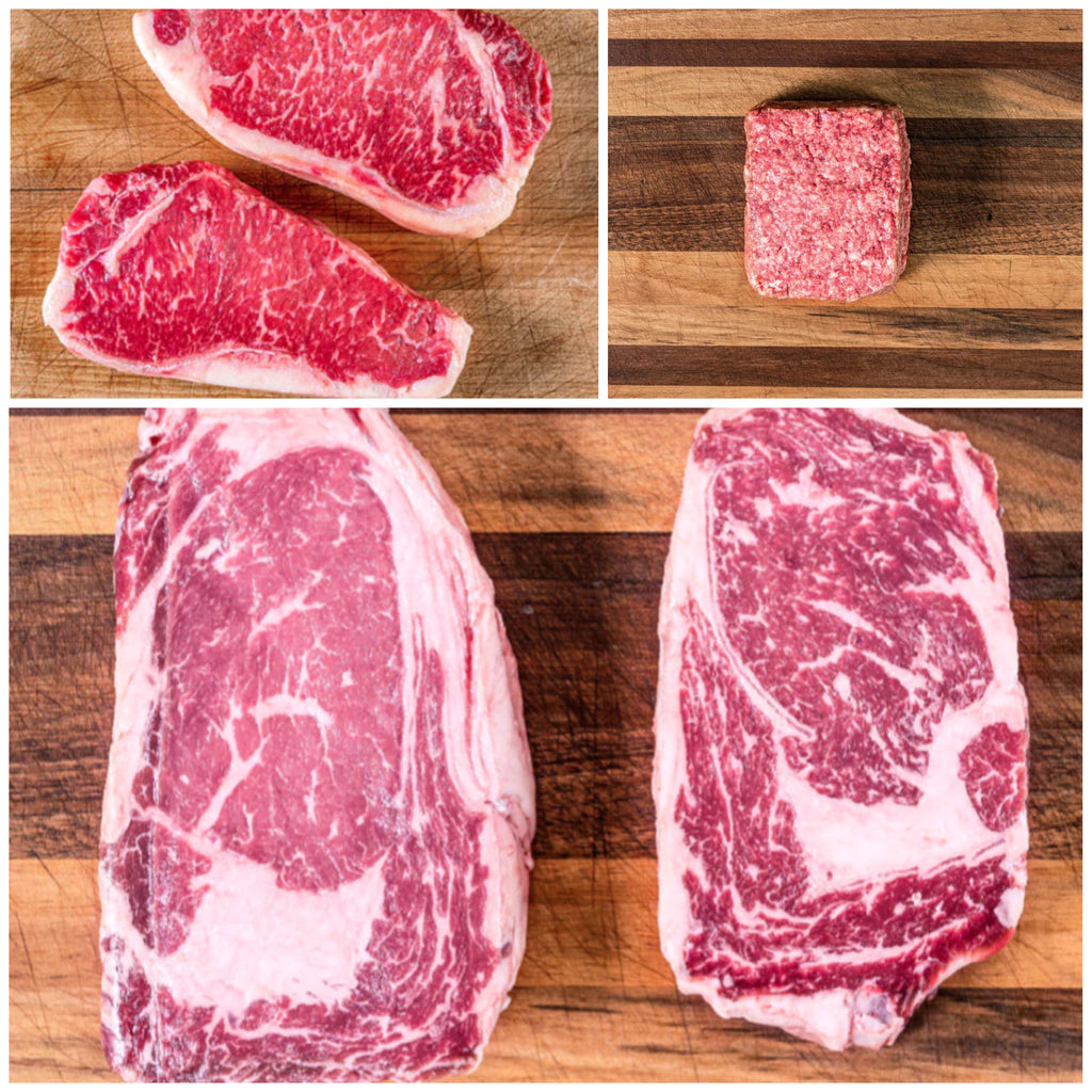 Contents: (2) Roseda Delmonico Steaks, (2) Roseda New York Strip Steaks and (1) Roseda Chuck Roast
