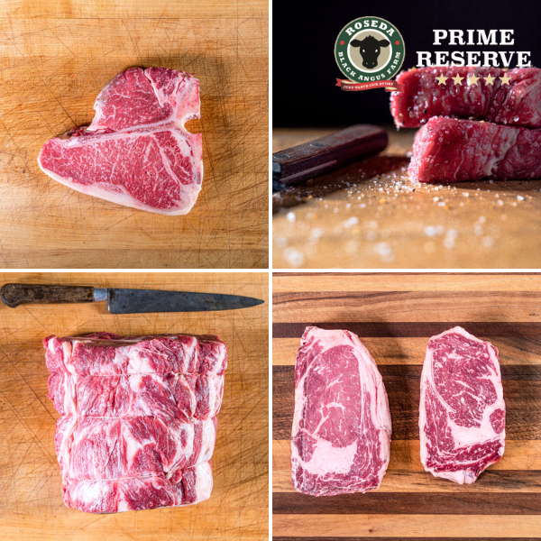 Contents: (1)Prime Reserve Chuck Roast, (2)Prime Reserve Porterhouse Steak, (2)Prime Reserve Delmonico Steak, (4)Prime Reserve Sirloin Steak
